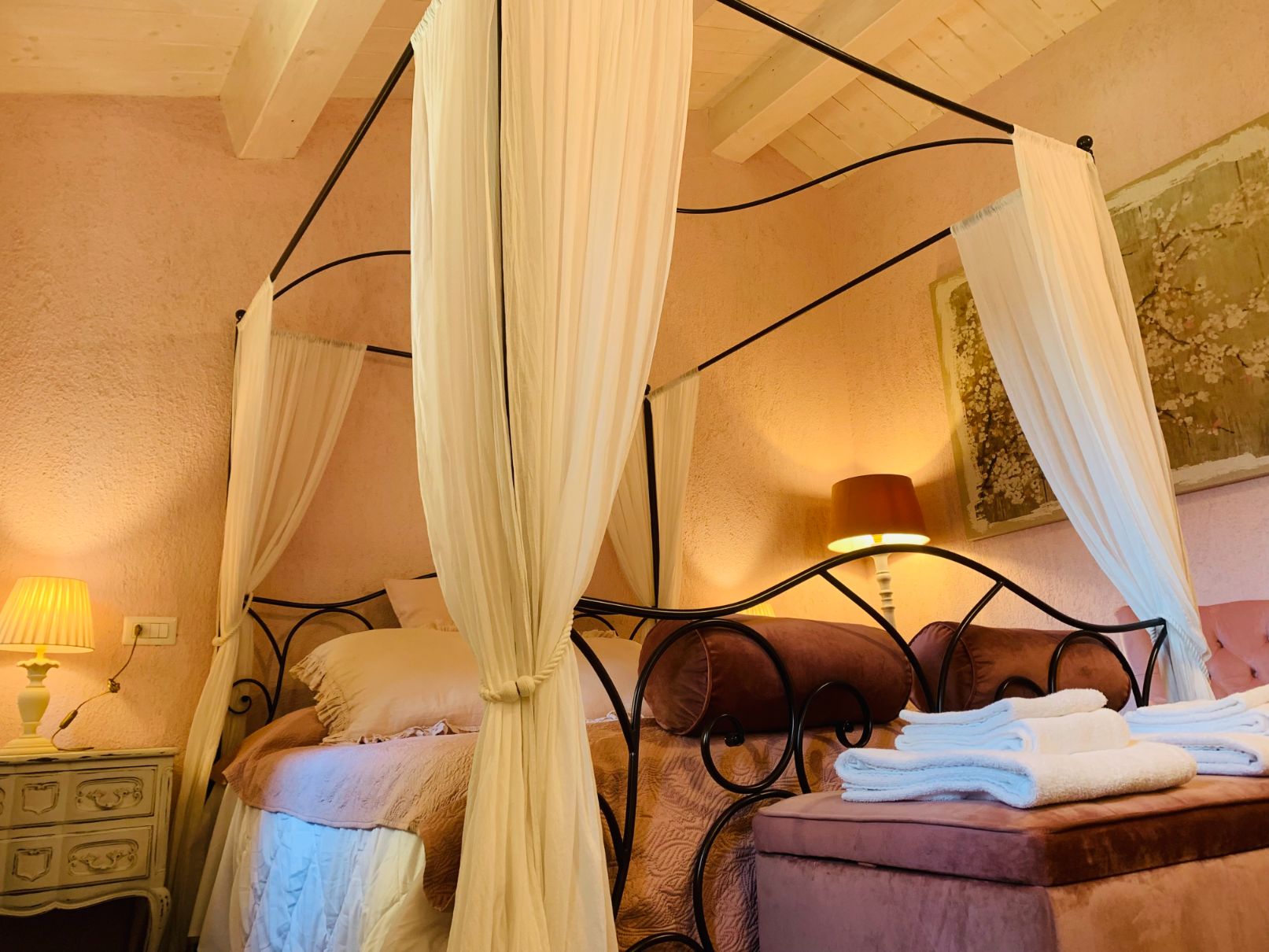 La camera Rosa Superior è il fiore all’occhiello dell’Agriturismo Fonte Rosa. E’ la camera più spaziosa della struttura ed è l’unica ad avere il letto matrimoniale a baldacchino. Arredata con stile shabby romantico, con travi bianche a vista è l’ideale per un soggiorno da sogno. La grande zona bagno è caratterizzata da un lavabo in noce massello e ferro battuto realizzato da due artigiani locali, nell’ampia doccia è possibile utilizzare il getto dell’acqua a cascata massaggiante. La camera è dotata di aria condizionata, riscaldamento indipendente, tv a led 40” e collegamento wi-fi.